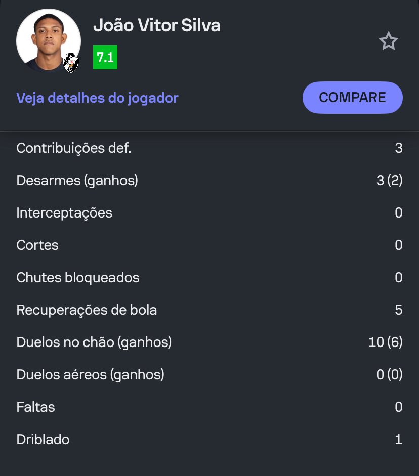 Mesmo atuando fora de posição, João Vitor foi mais participativo que o titular da função. O Cria da Colina se destacou nos duelos defensivos e conseguiu dar mais proteção pelo esquerdo do setor defensivo vascaíno.