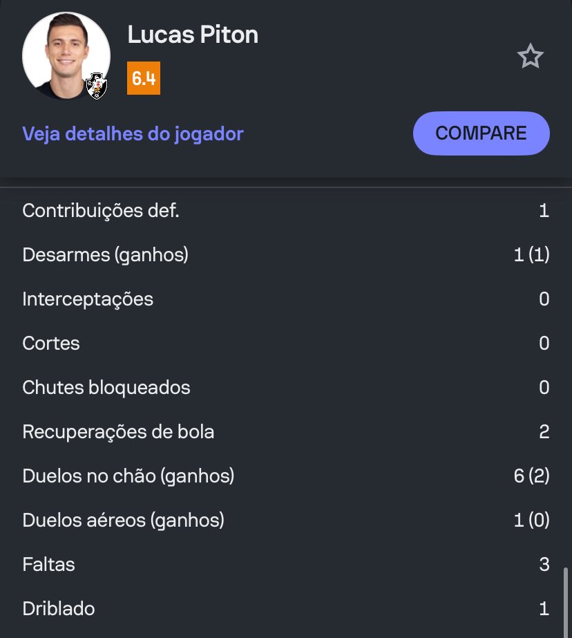 Em má fase com a camisa do Vasco da Gama, o lateral Lucas Piton não fez uma boa partida na vitória contra o Boavista, pela quarta rodada do Carioca. Piton foi substituído no intervalo pelo atacante João Vitor, que jogou improvisado na lateral esquerda.